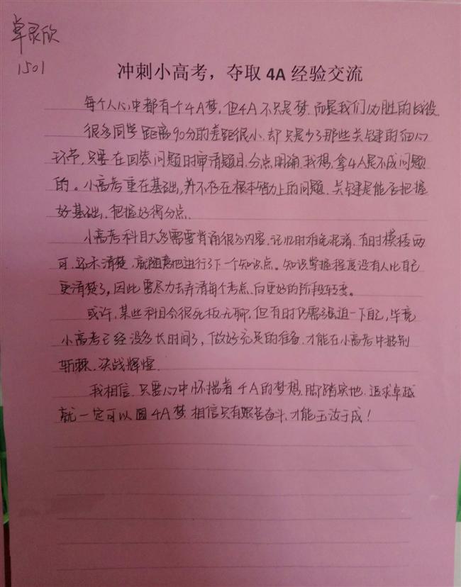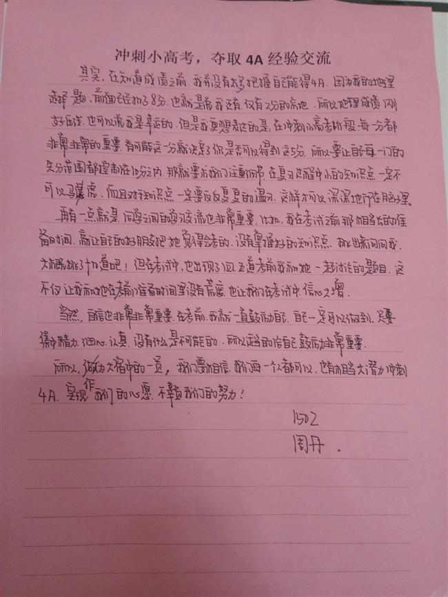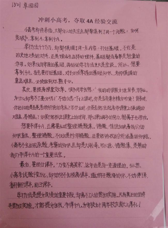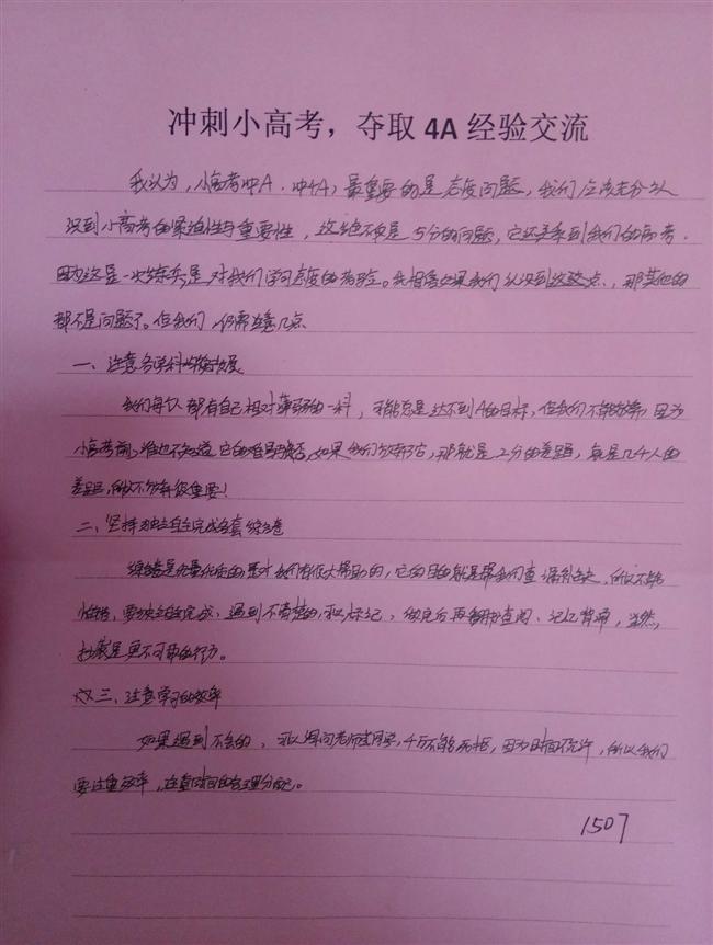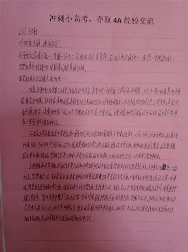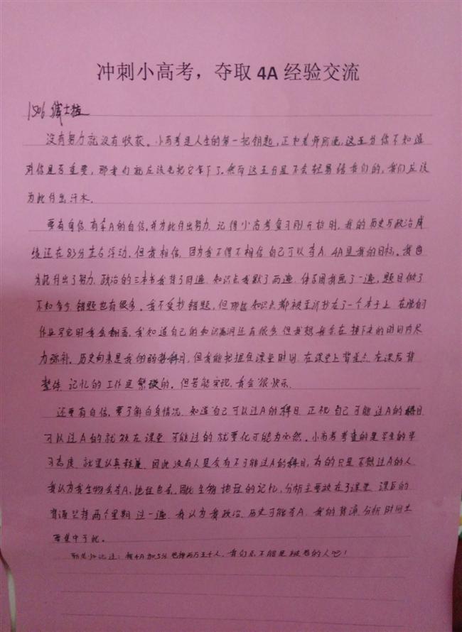 【回顾篇】之高二1部第一次全市统测获得4A同学的经验交流(二)