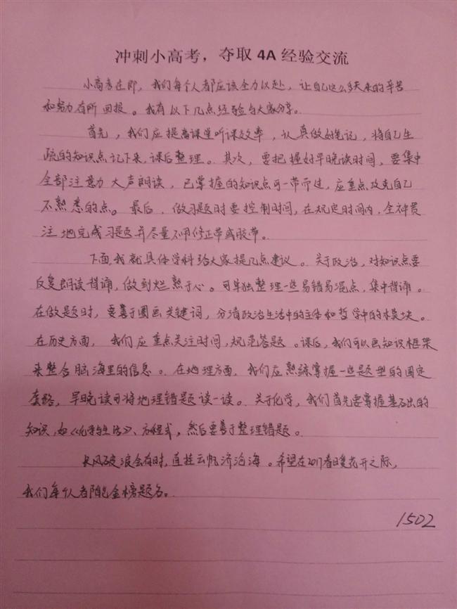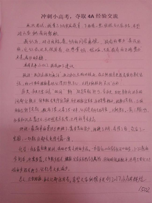 第一次全市学业水平统测中获得4A的19名同学的经验交流图片原始稿。