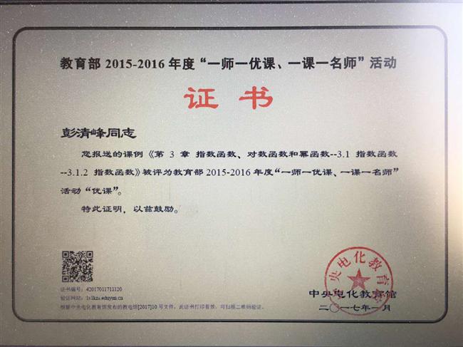 祝贺陈柱老师在2017年江苏省中学青年数学教师优秀课观摩与评比活动中,荣获贰等奖