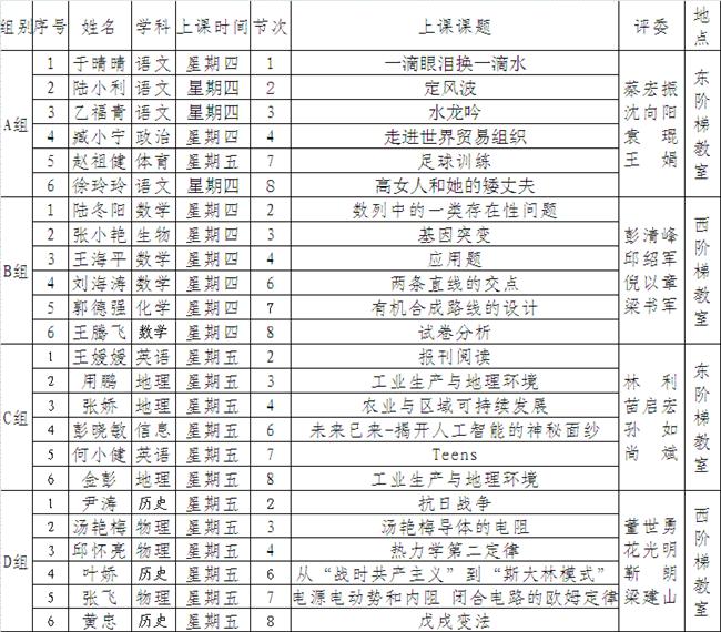宿迁中学第二十三届五四杯青年教师课堂大赛安排表