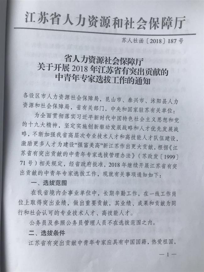 关于开展2018年享受政府特殊津贴人员及有突出贡献的中青年专家选拔工作的通知
