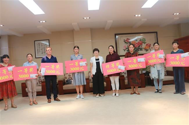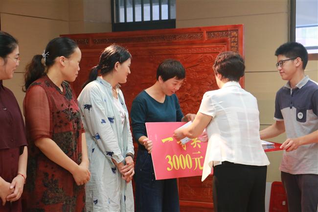 王孝玲校长给2018届优秀毕业生家长颁奖并合影