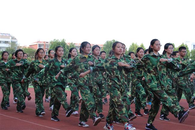 同学们按班级进行了会操表演,展现了这几天的军训成果,整齐的步伐,响亮的口号,充分体现了本届高一新生的良好精神风貌。