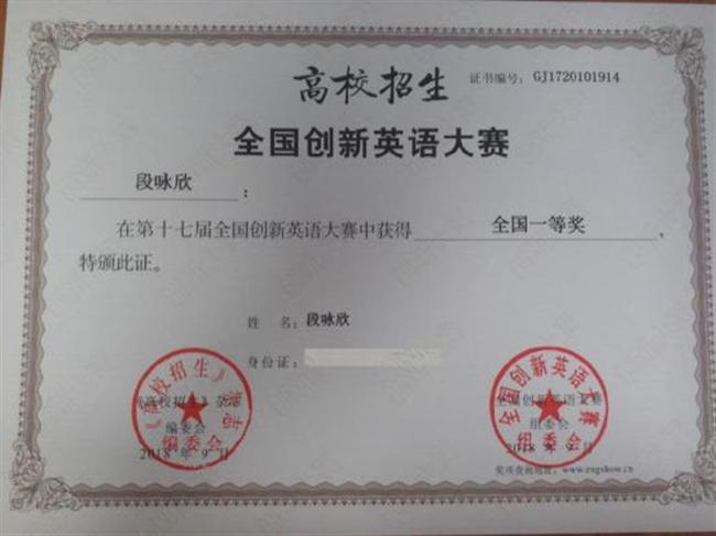 “全国创新英语大赛”自2001年起开始举办,在教育部高校学生司和教育部考试中心指导下,由《高校招生》与北大、清华、北师大等数十所名牌高校联合举办。大赛优胜者有机会获得各大联办重点名牌高校的自主招生资格,许多考生通过大赛为他们搭建的这条捷径成功地步入自己心仪的大学。