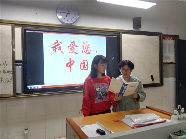 10月1日晚19:00,我校新疆班全体同学在教室看电视新闻,在他们看到升国旗奏国歌的时候,同学们不约而同的起立,饱含深情,齐唱国歌,表达了对伟大祖国敬仰和祝福。电视新闻结束后,各班级学生代表朗诵散文诗——《我爱你,中国》。“69年,筚路蓝缕,风雨兼程。69年,春华秋实,砥砺奋进。这是一个强大的中国,更是一个奋进的中国。”2017级1班两名学生的朗诵热情饱满,感情真挚,献上他们对祖国衷心的感恩和祝福,字里行间洋溢着对伟大祖国的无比热爱之情。