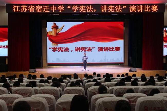 根据上级文件(宿教函【2018】399号)精神,为推进青少年法治教育特别是宪法教育,普及法治知识,培养法治观念,弘扬宪法精神,学校通过升旗仪式、主题班会、组织学生参加“宪法小卫士”网络火炬传递活动等形式积极开展“学宪法·讲宪法”主题教育活动。为了进一步营造浓厚的“学宪法·讲宪法”的学习氛围,做好参加宿迁市选拔赛的参赛人选遴选工作,学校举办了“学宪法·讲宪法”演讲比赛。经过班级推荐、年级选拔,共有14位优秀选手参与此次决赛。