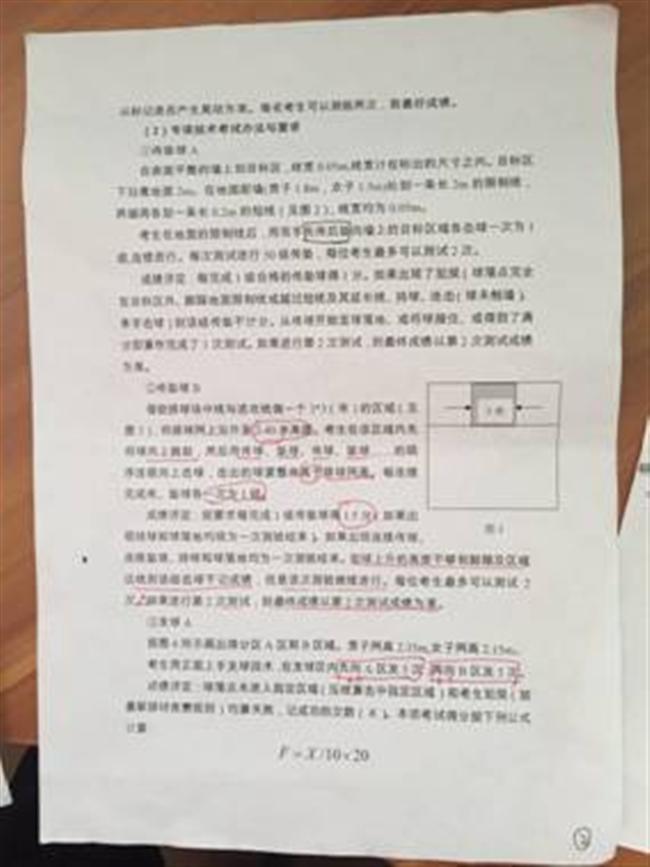 3、     发球:前后、左右,各发5个到指定区域,每个2分,共20分。考试中最多失误2个,否则影响整体成绩。怎么解决女生发不到后场球的问题?相信自己的力量是够的,掌握技术后,一定能发到远场。先练抛球,抛球要稳,看落点。找准击球部位,中后部,用掌根或半握拳掌根,加快挥臂速度,直臂击球,直臂落下,全身协调用力把球发出去。平时多用小树枝练习鞭打动作,加强手臂动作的练习,准备活动时,先对墙发球,墙上表明2.4米高度。多练习,多磨合,会取得好成绩。发球压线是好球。