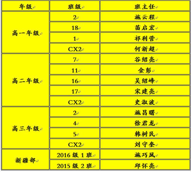 高一地理、高一英语1、高一英语2、高一生物;高二物理1、高二年级管理处、高二历史、高二政治;高三语文2、高三化学、高三生物、高三政治;高一创新语化、高二创新语文、高三创新语文;新疆部语文组、新疆部数学组。