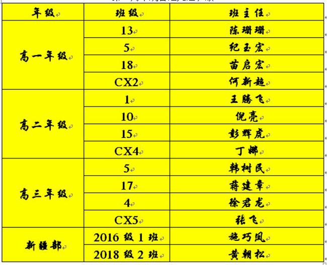 高一5班、高一7班、高一8班、高一10班;高二2班、高二9班、高 二12班、高二17班;高三5班、高三7班、高三13班、高三18班;高 一创新2班、高二创新4班、高三创新5班;新疆部1602、1702