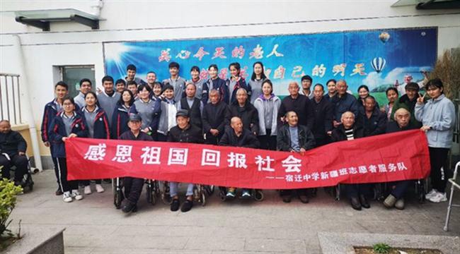 为弘扬尊老、敬老、爱老、助老的传统美德,4月11日,宿迁中学新疆部组织开展了“感恩祖国,回报社会”公益活动。24名学生志愿者走进蔡集敬老院,为老人们带去心灵上的慰藉,让他们感受到青少年的朝气和社会的温暖。