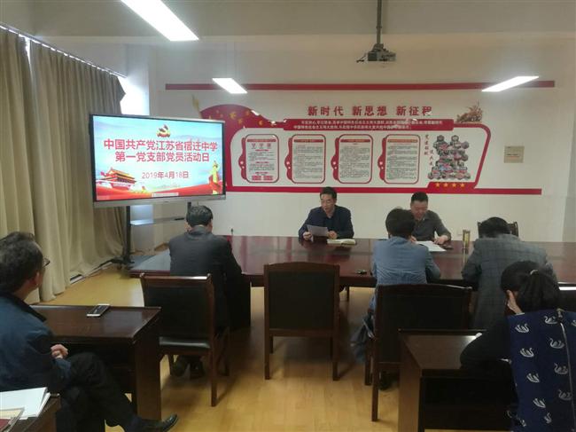 4月18日下午,宿迁中学第一党支部在明德楼五楼第二会议室开展了主题党日活动,活动由支部书记杜军主持,第一党支部全体党员参加了活动。