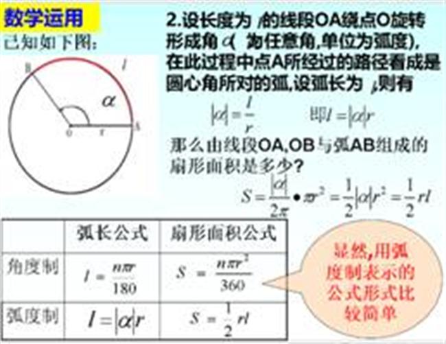 位,引发学生思考如何用十进制度量角,从而得出弧度制;在探究弧度制的过程充分调动学生的探索热情,从变化中发现不变的量即当扇形圆心角确定时角所对的弧长与半径的比值是不变的,因此用这个比值去度量角,从而得出弧度制的概念,设计思路清晰,教学方法得当,教学效果好。(2)课堂气氛活跃,学生能积极参与,教师启发得当,回答问题准确率高。
