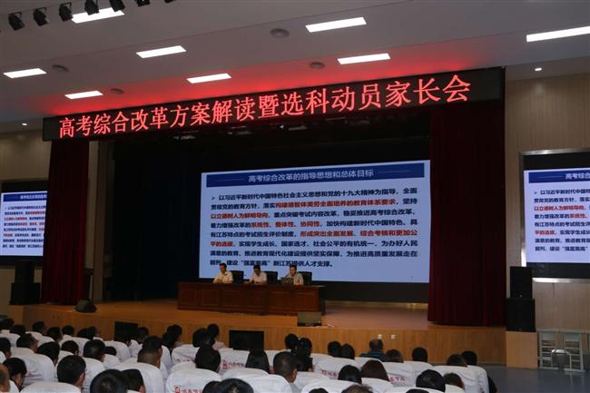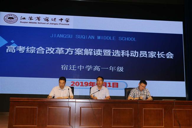 6月1日上午,宿迁中学高一年级在明德楼宣德厅举行了高考综合改革方案解读暨选科动员家长会。会议由宿迁中学党委委员、纪委书记、高一年级分管领导臧其胜同志主持。